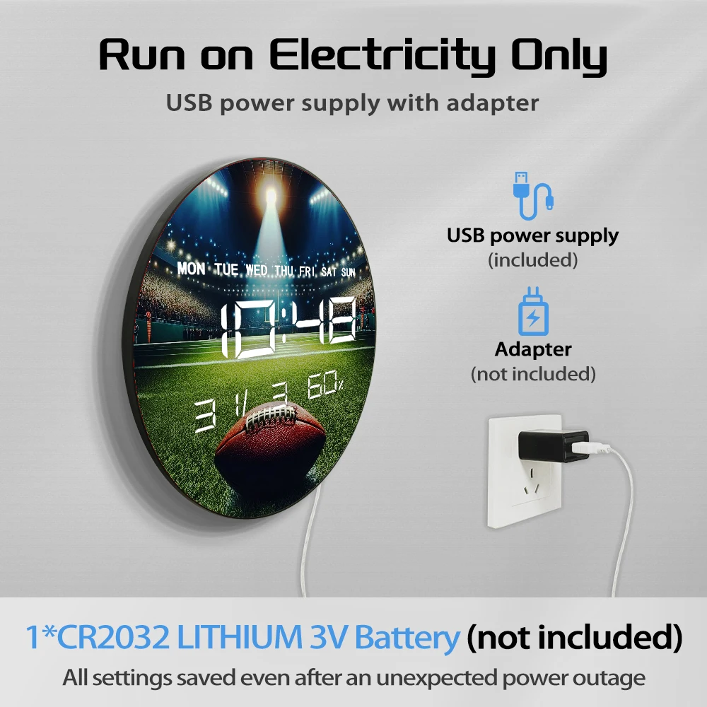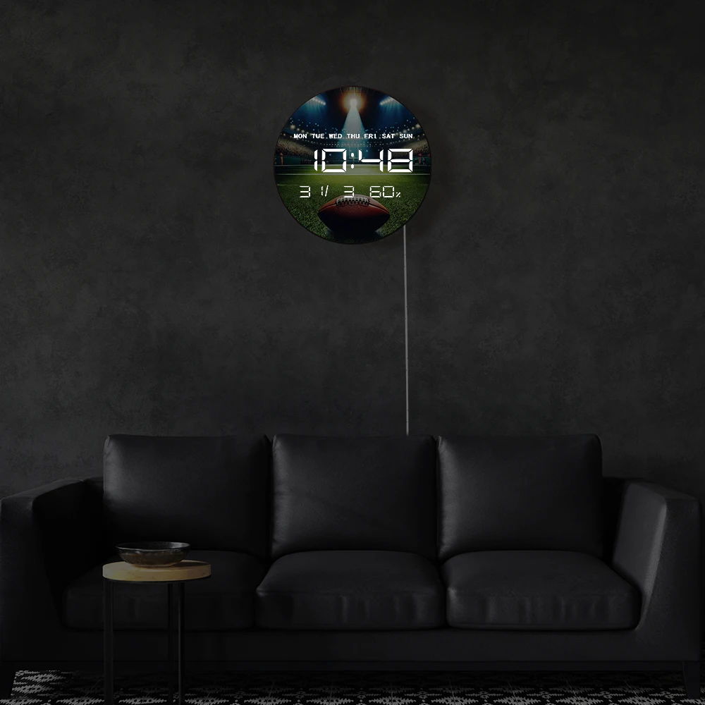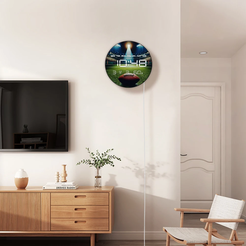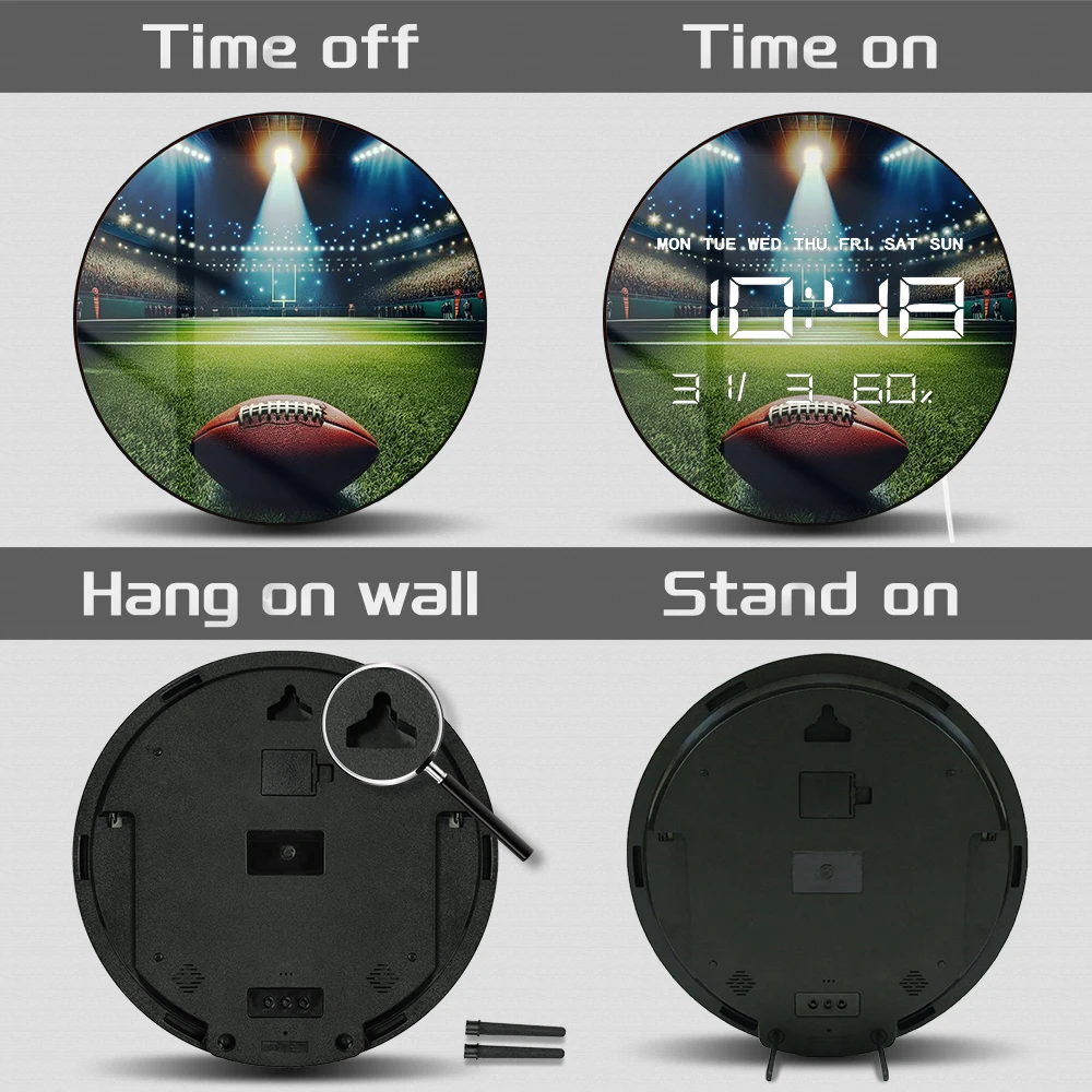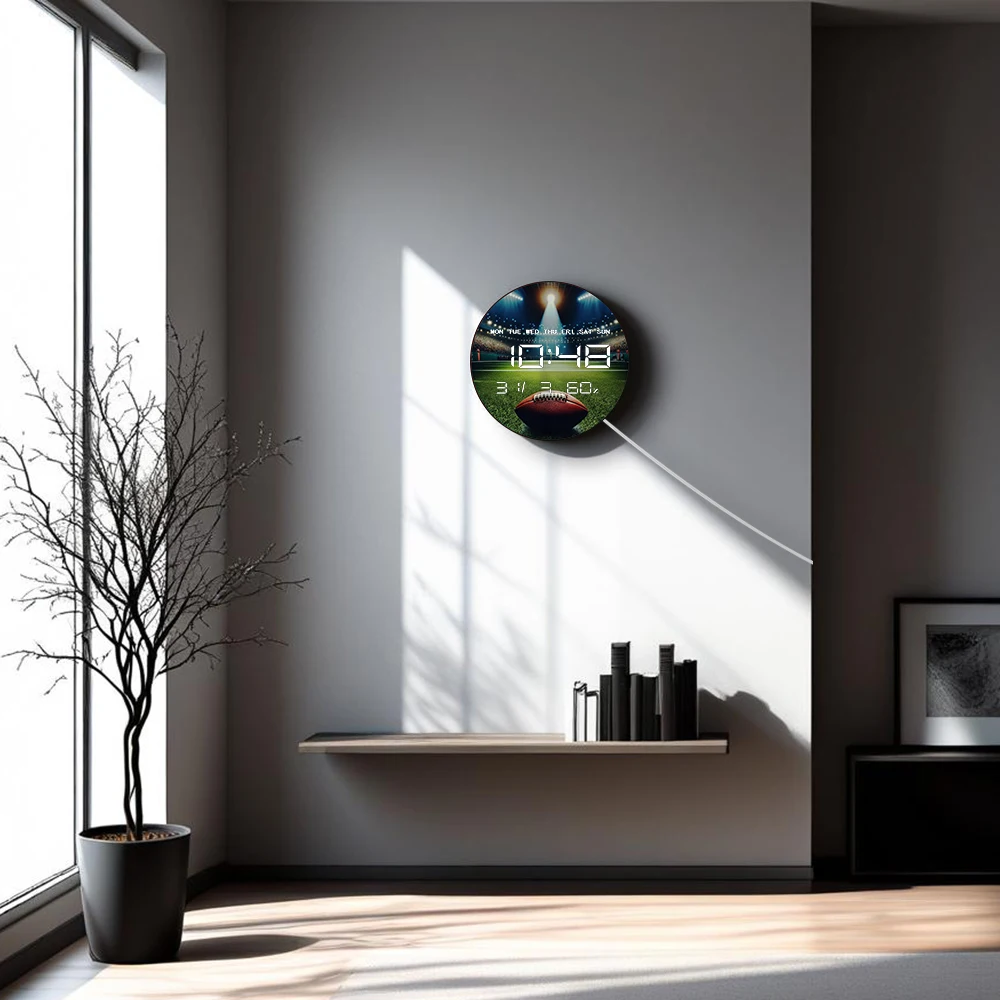 American Football Ball Digital Wall Clock with LED Display Calendar Temperature Auto Dimming 12/24hr Format Electric Wall Clock