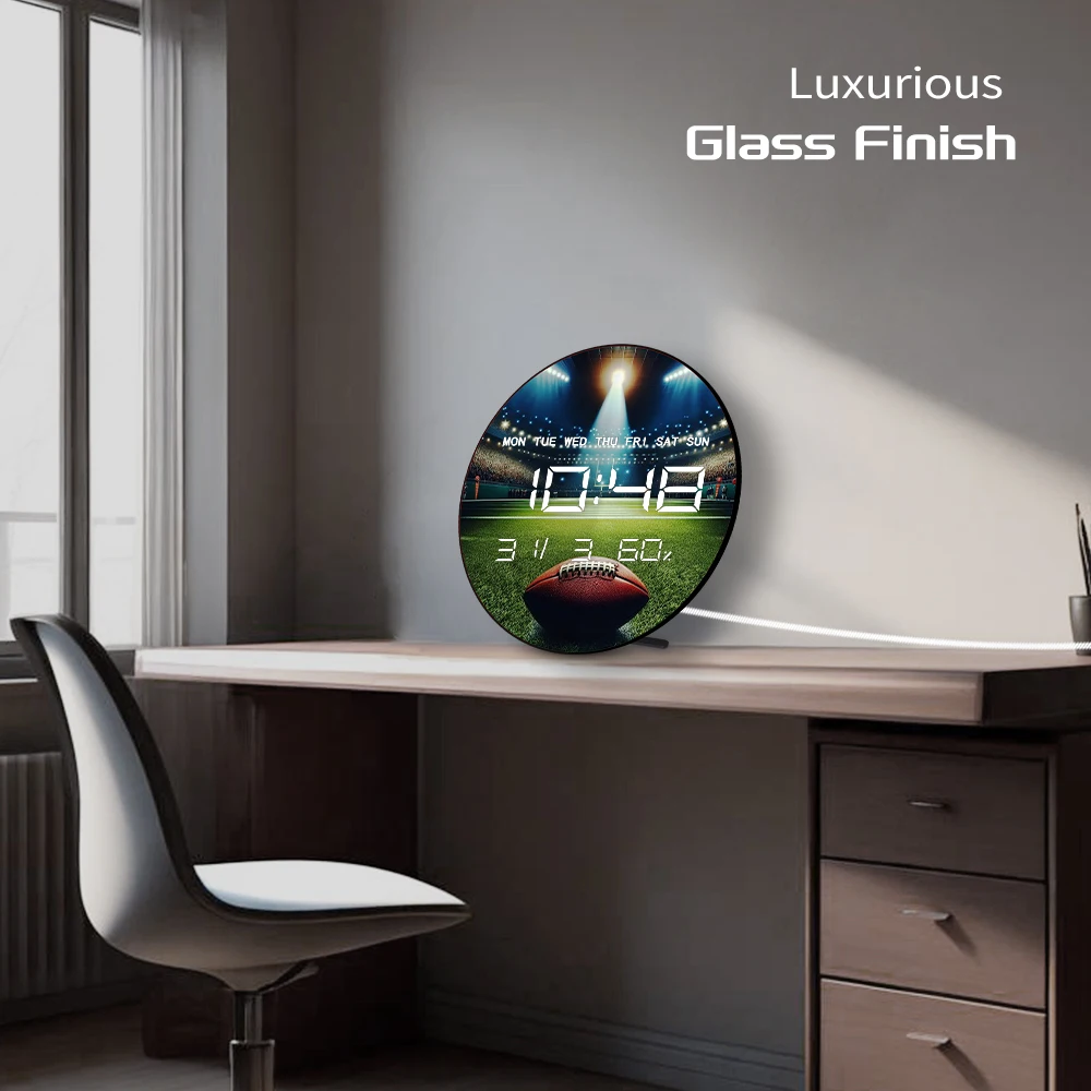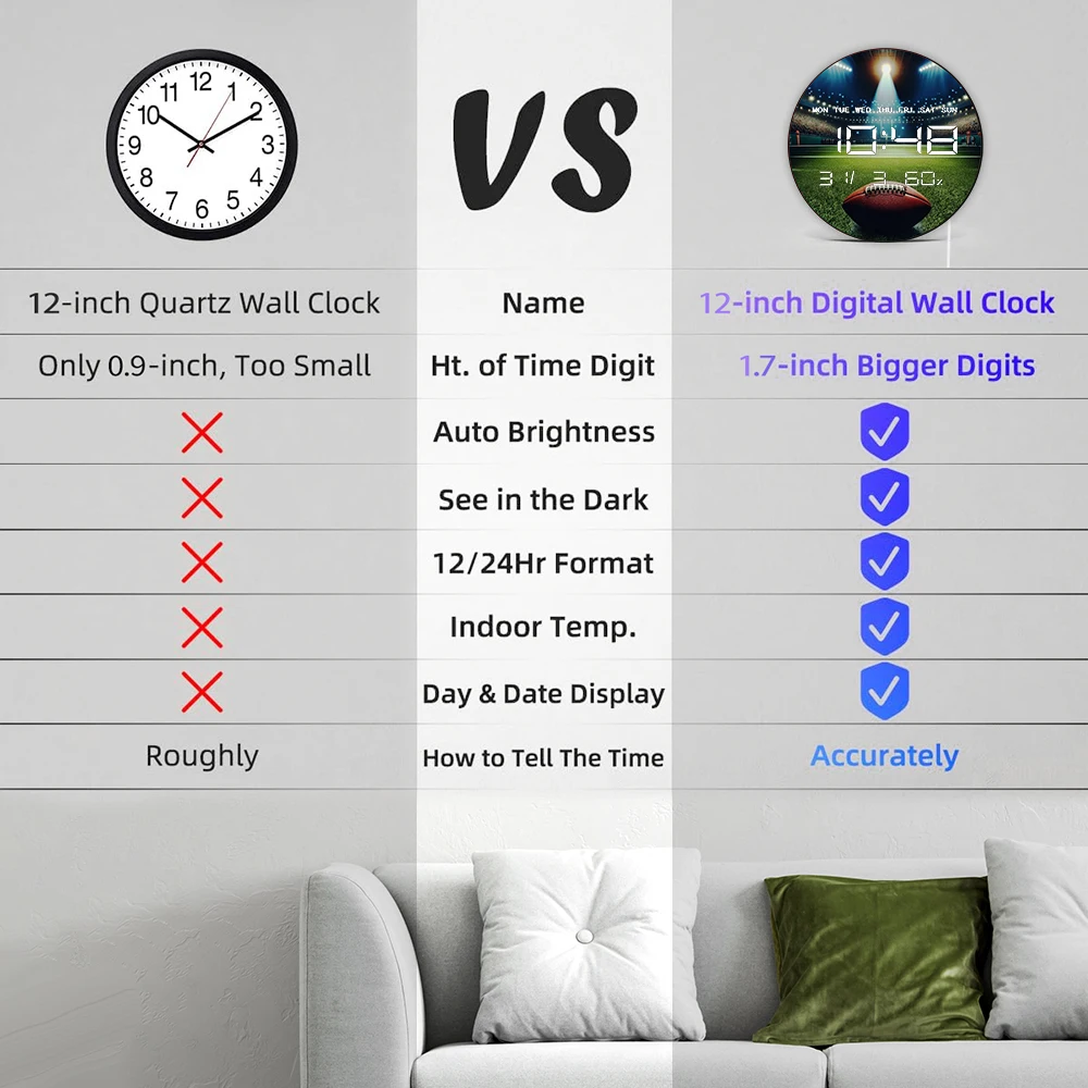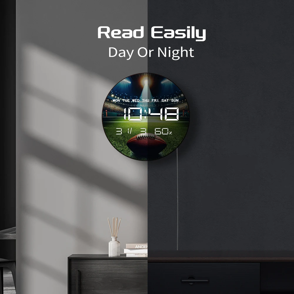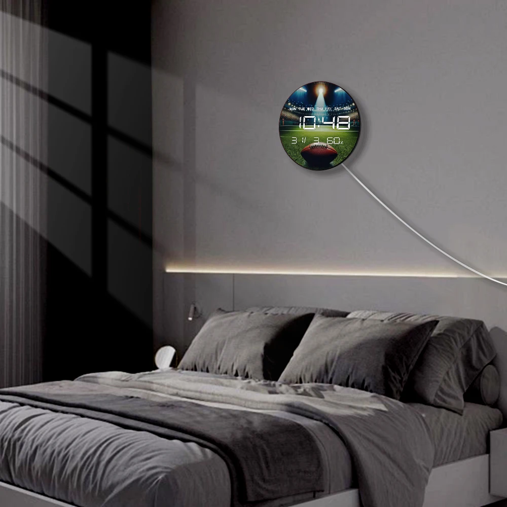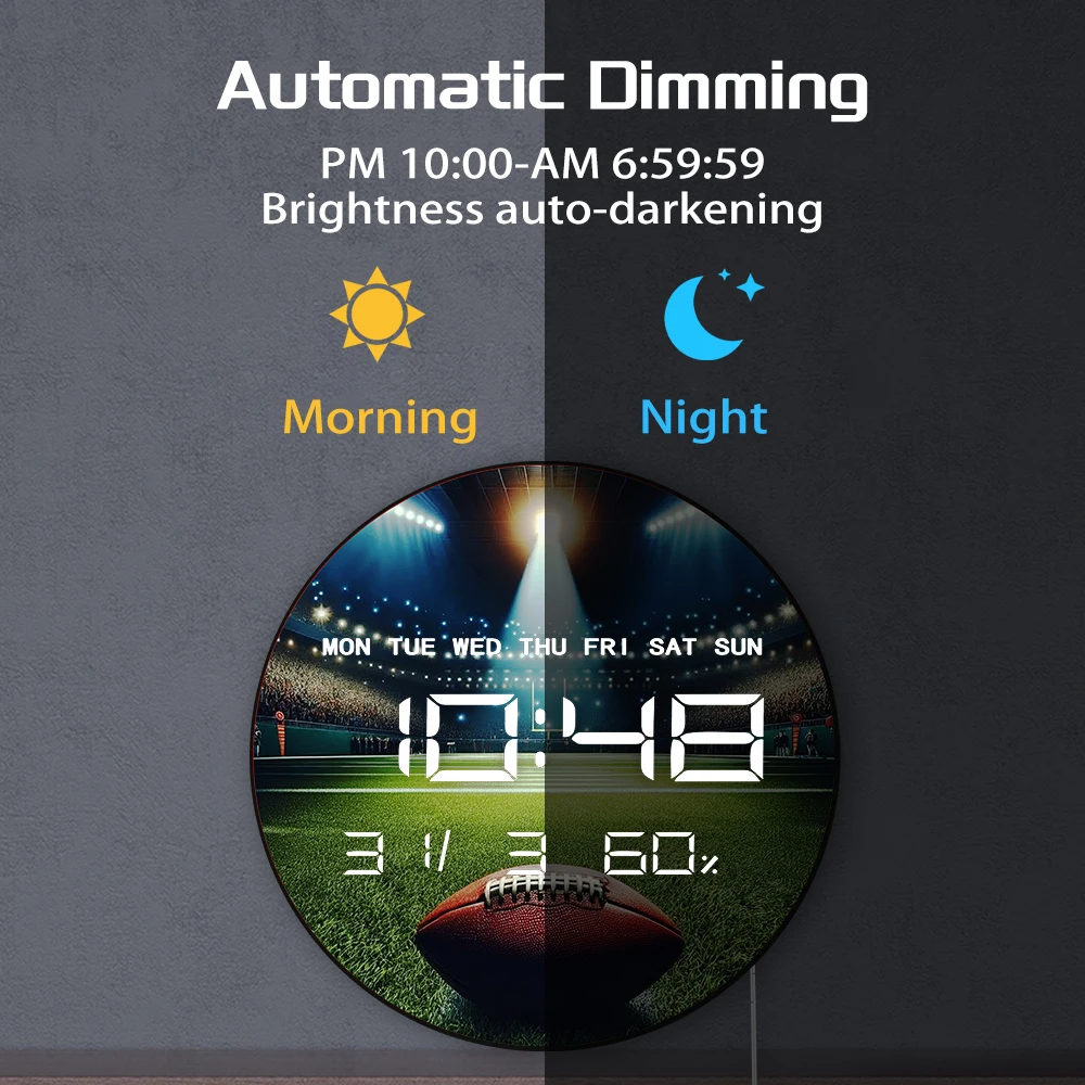American Football Ball Digital Wall Clock with LED Display Calendar Temperature Auto Dimming 12/24hr Format Electric Wall Clock