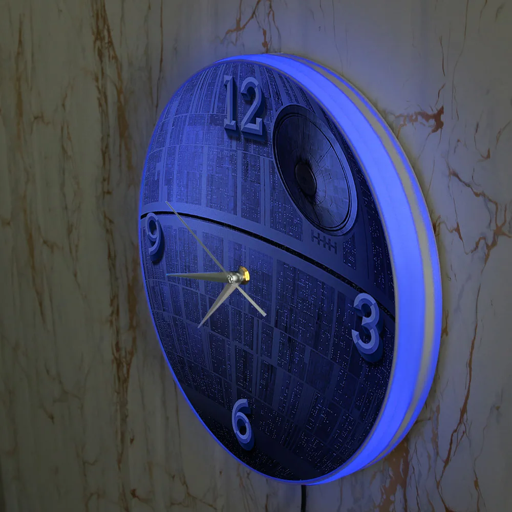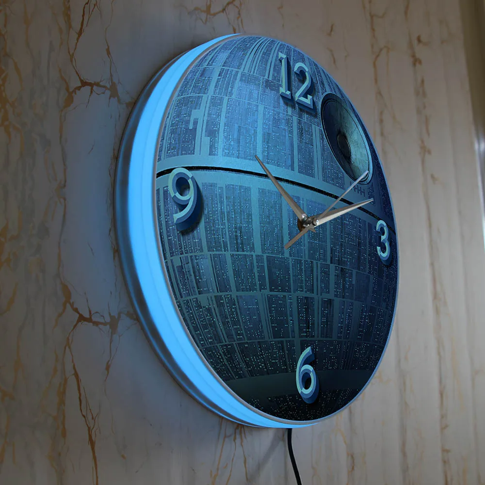 White frame with LED light inside. In case you are choosing the clock with backlight, it is fitted with led linear and remote control. The backlight is very easy in use. It can be connected via any 5V USB port. You can plug into different devices, such as a computer, desktop, laptop, TV, power bank, cell phone charger, 5V adapter and so on. The controller operates the on/off and modes of the lights. It is small and very handy. The lights themselves have a very nice glow. There are available 7 color and 3 brightness modes. In case you are ordering clock with backlight, you will get -An white frame clock with led linear; -IR RGB LED remote control; -1.8 meters USB cable; -The 5V adapter will be also sent together according to your shipping address.