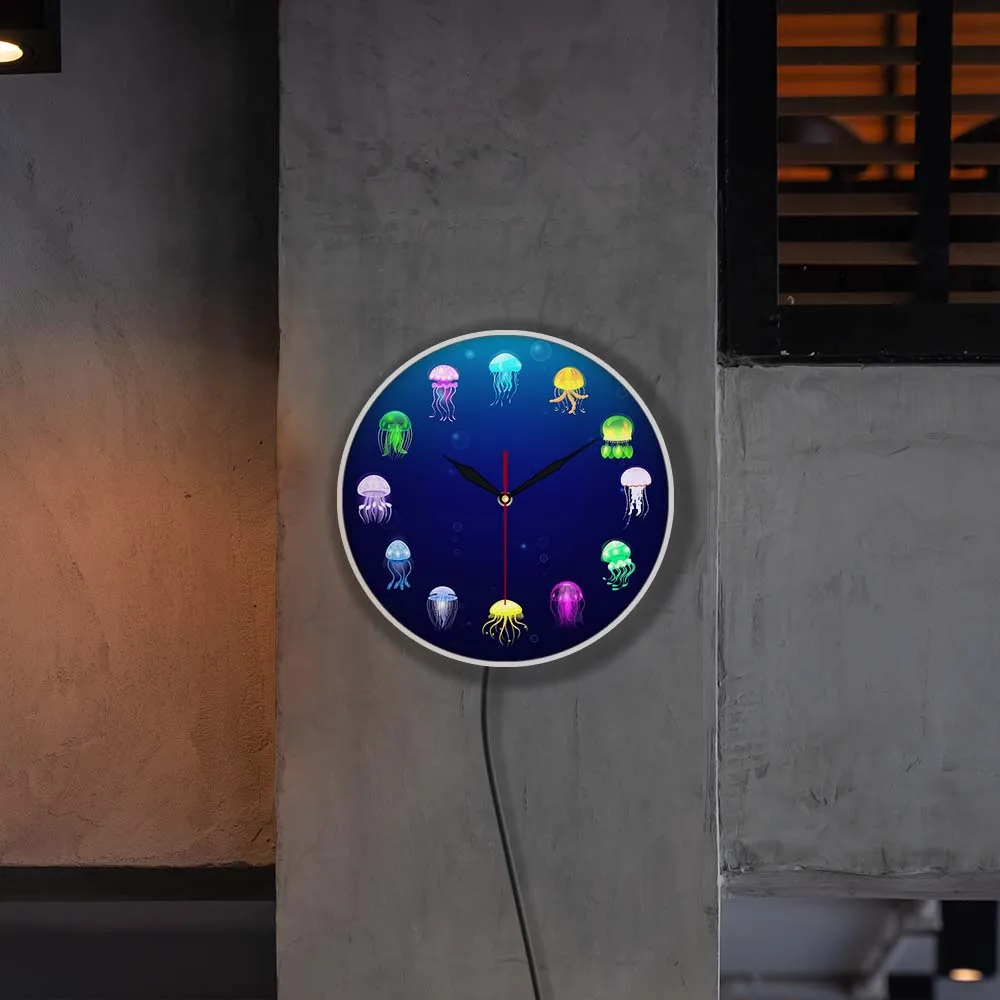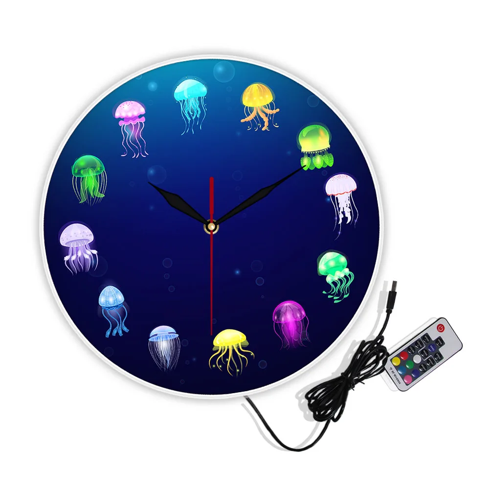 White frame with LED light inside. In case you are choosing the clock with backlight, it is fitted with led linear and remote control. The backlight is very easy in use. It can be connected via any 5V USB port. You can plug into different devices, such as a computer, desktop, laptop, TV, power bank, cell phone charger, 5V adapter and so on. The controller operates the on/off and modes of the lights. It is small and very handy. The lights themselves have a very nice glow. There are available 7 color and 3 brightness modes. In case you are ordering clock with backlight, you will get -An white frame clock with led linear; -IR RGB LED remote control; -1.8 meters USB cable; -The 5V adapter will be also sent together according to your shipping address.