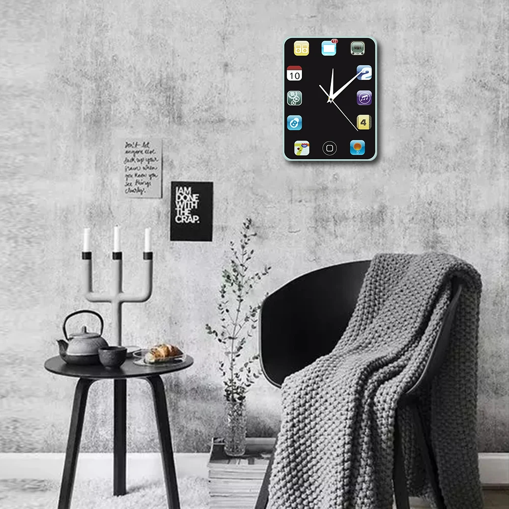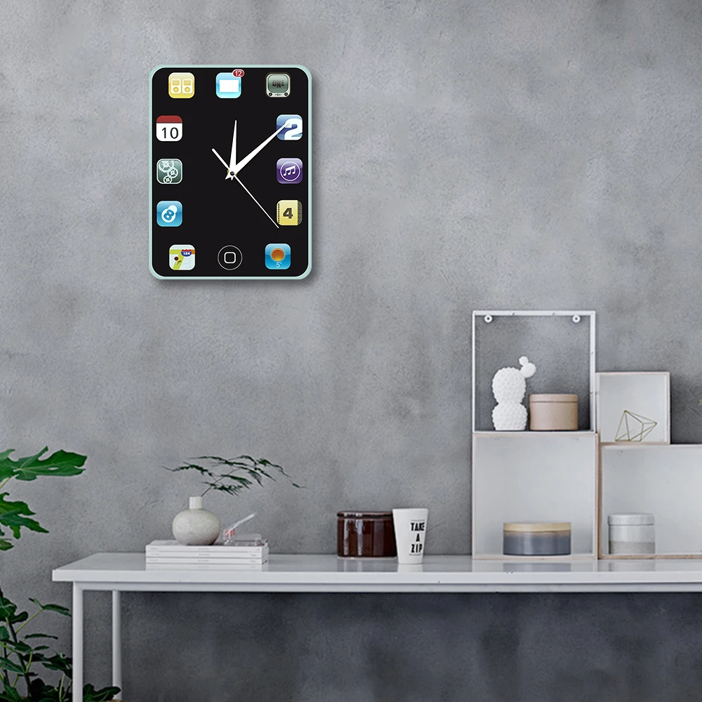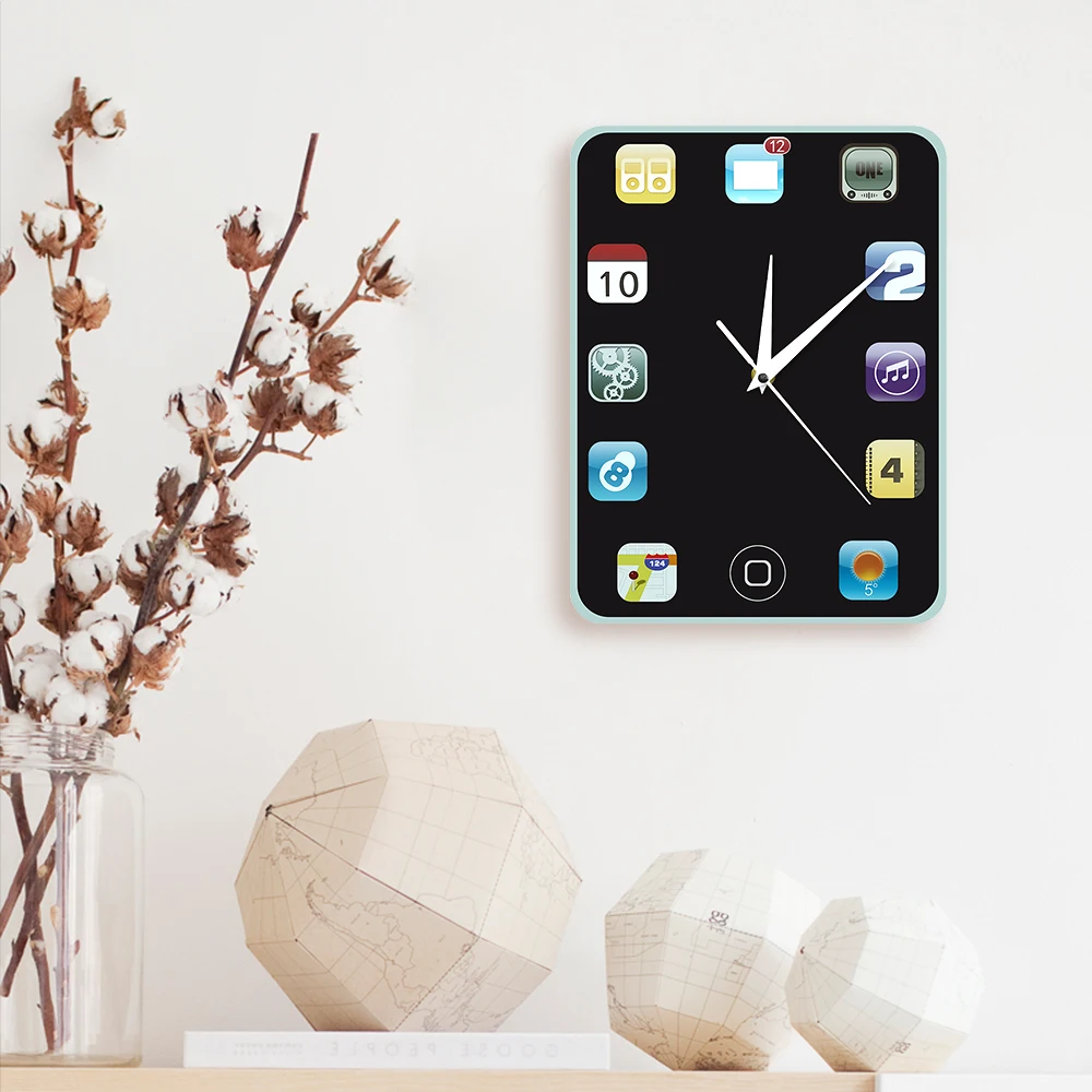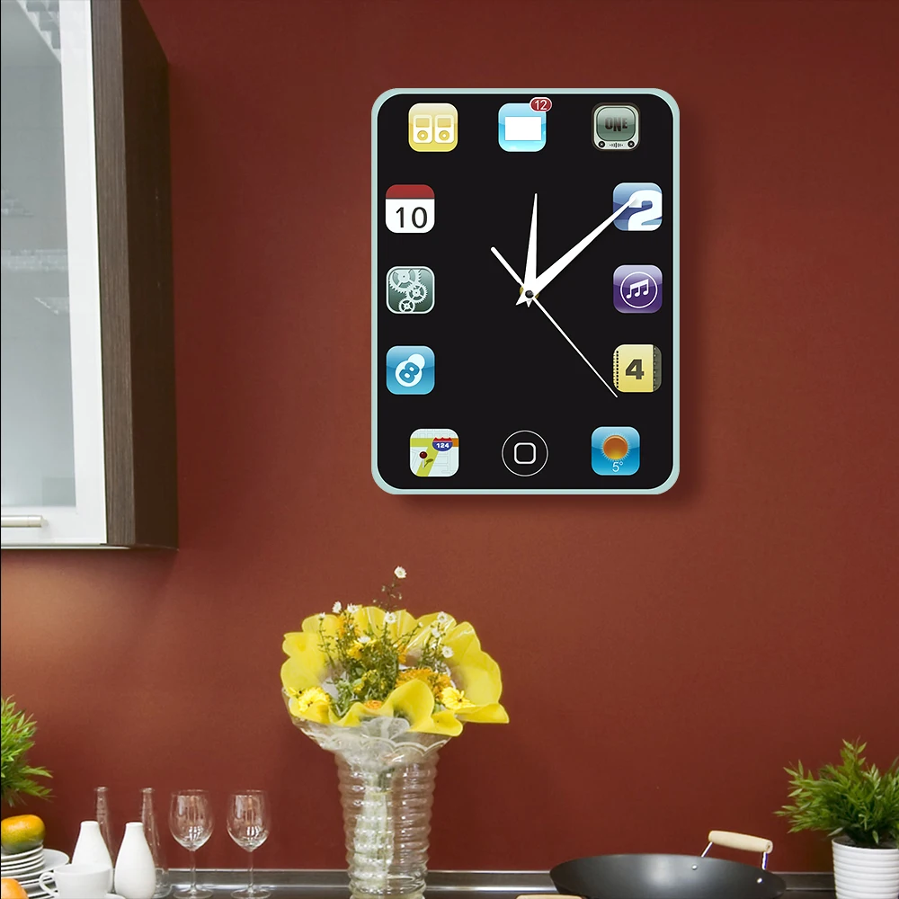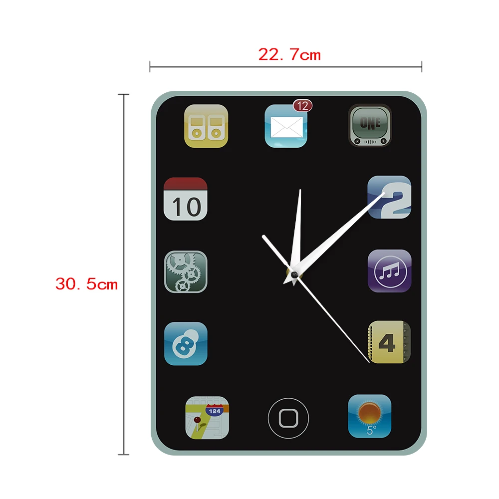 Are you looking for a nicely designed wall clock? This could be your chance to get one. It has an elegant black background color and made colorful with the different designs of the numbers on it. The number signs are based from 12 phone/pad icons making it a perfect gift for tech savvy personalities or collectors of quirky and useful items. It can even be a perfect decoration for you room or shelves if you want. You can use it at home or the office, or wherever you wish to put it.