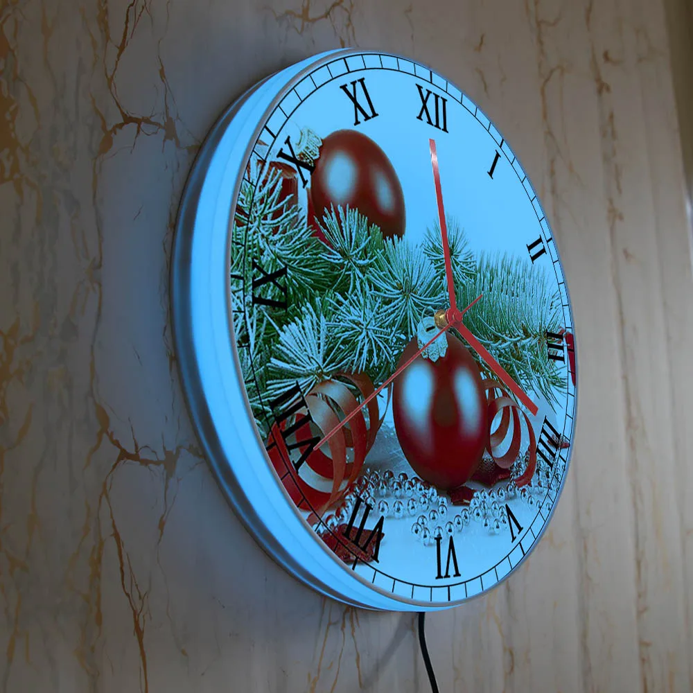 White frame with LED light inside. ​ ​In case you are choosing the clock with backlight, it is fitted with led linear and remote control. The backlight is very easy in use. It can be connected via any 5V USB port. You can plug into different devices, such as a computer, desktop, laptop, TV, power bank, cell phone charger, 5V adapter and so on. ​ ​The controller operates the on/off and modes of the lights. It is small and very handy. The lights themselves have a very nice glow. There are available 7 color and 3 brightness modes. ​ ​In case you are ordering clock with backlight, you will get ​-An white frame clock with led linear; ​-IR RGB LED remote control; ​-1.8 meters USB cable; ​-The 5V adapter will be also sent together according to your shipping address.