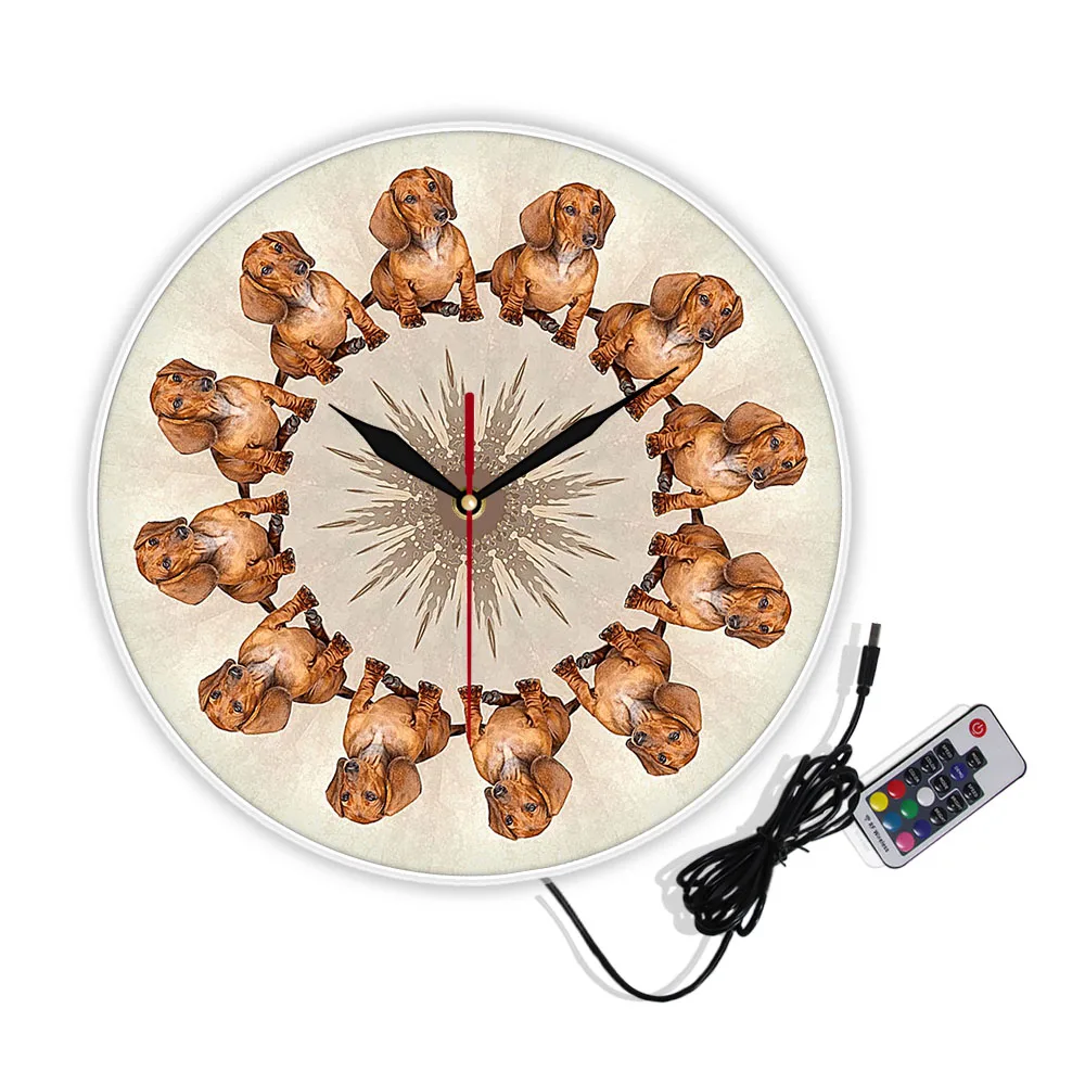 White frame with LED light inside. ​ ​In case you are choosing the clock with backlight, it is fitted with led linear and remote control. The backlight is very easy in use. It can be connected via any 5V USB port. You can plug into different devices, such as a computer, desktop, laptop, TV, power bank, cell phone charger, 5V adapter and so on. ​ ​The controller operates the on/off and modes of the lights. It is small and very handy. The lights themselves have a very nice glow. There are available 7 color and 3 brightness modes. ​ ​In case you are ordering clock with backlight, you will get ​-An white frame clock with led linear; ​-IR RGB LED remote control; ​-1.8 meters USB cable; ​-The 5V adapter will be also sent together according to your shipping address.