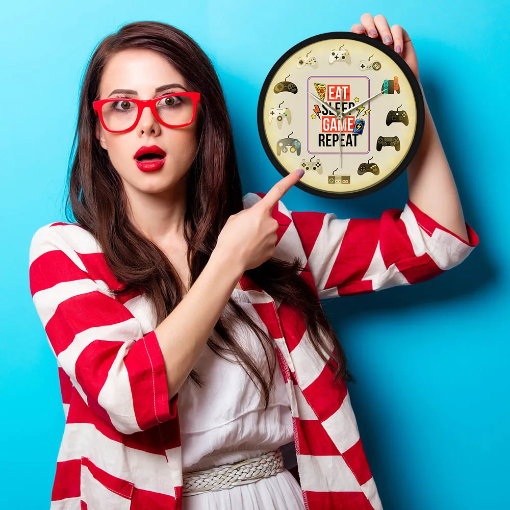 Eat Sleep Game Repeat Sound Activated Wall Clock